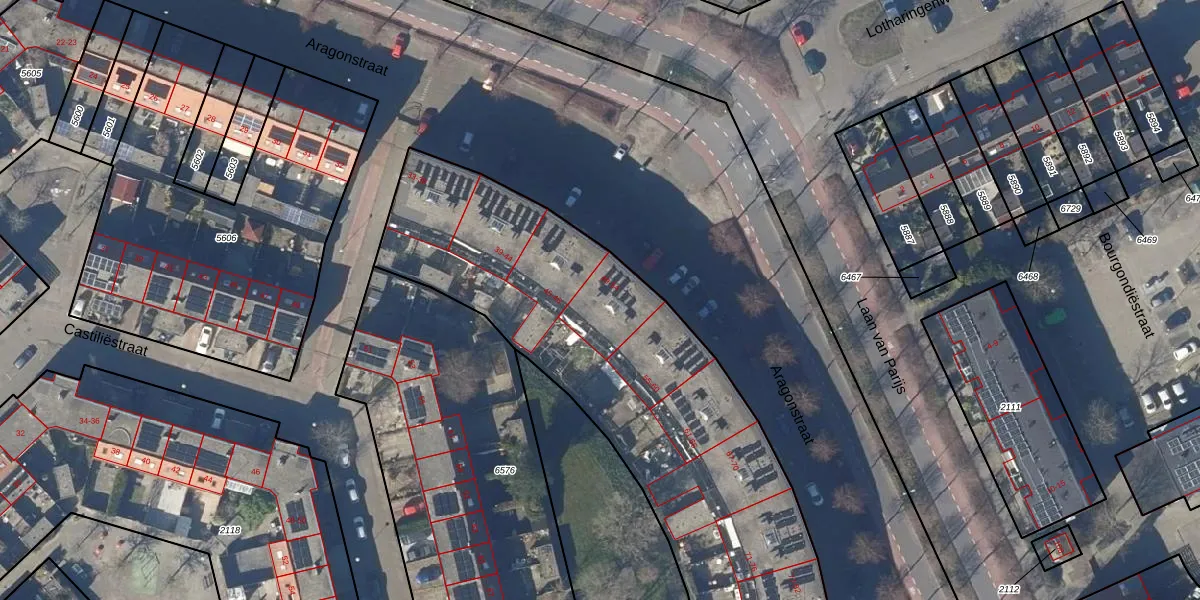 Het perceel waarop Aragonstraat 51 staat heeft een oppervlakte van 4180 m². Dit is een zeer groot perceel. De perceeloppervlakte wordt geregistreerd door het Kadaster. Gedetailleerde informatie over de maten van dit perceel kunt u vinden in het rapport Kadastrale kaart met maatvoering van Aragonstraat 51.