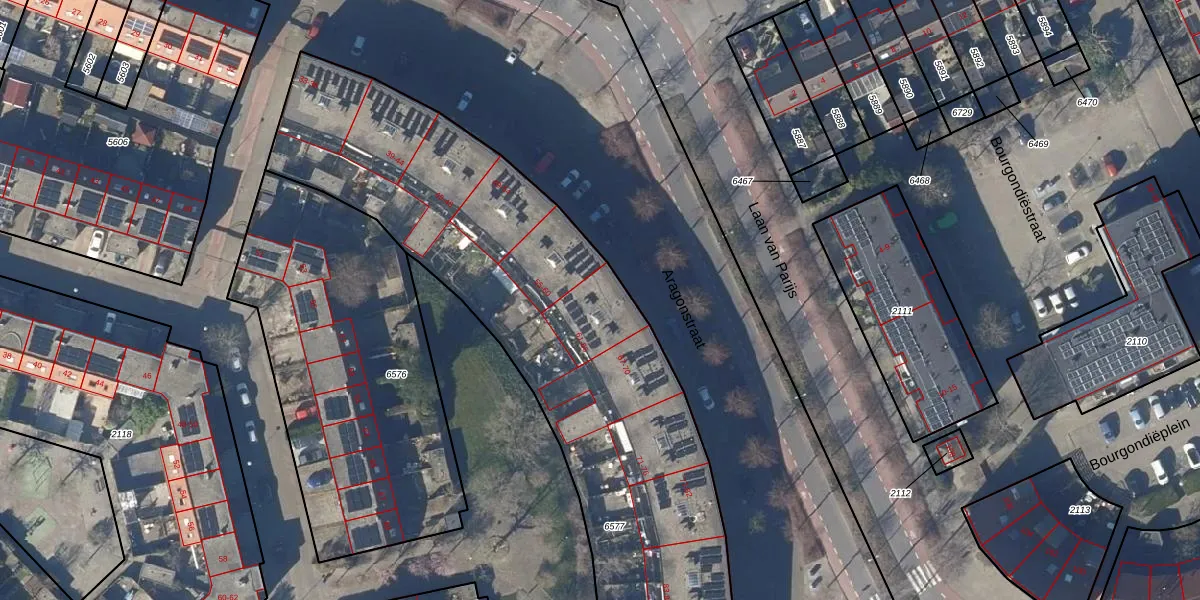 Het perceel waarop Aragonstraat 61 staat heeft een oppervlakte van 4180 m². Dit is een zeer groot perceel. De perceeloppervlakte wordt geregistreerd door het Kadaster. Gedetailleerde informatie over de maten van dit perceel kunt u vinden in het rapport Kadastrale kaart met maatvoering van Aragonstraat 61.