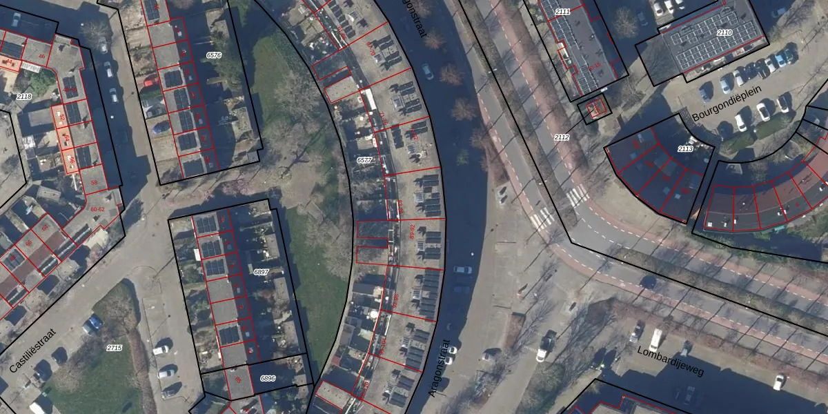 Het perceel waarop Aragonstraat 86 staat heeft een oppervlakte van 4180 m². Dit is een zeer groot perceel. De perceeloppervlakte wordt geregistreerd door het Kadaster. Gedetailleerde informatie over de maten van dit perceel kunt u vinden in het rapport Kadastrale kaart met maatvoering van Aragonstraat 86.