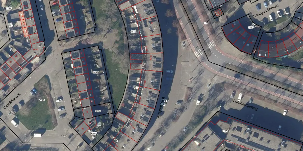 Het perceel waarop Aragonstraat 95 staat heeft een oppervlakte van 4180 m². Dit is een zeer groot perceel. De perceeloppervlakte wordt geregistreerd door het Kadaster. Gedetailleerde informatie over de maten van dit perceel kunt u vinden in het rapport Kadastrale kaart met maatvoering van Aragonstraat 95.