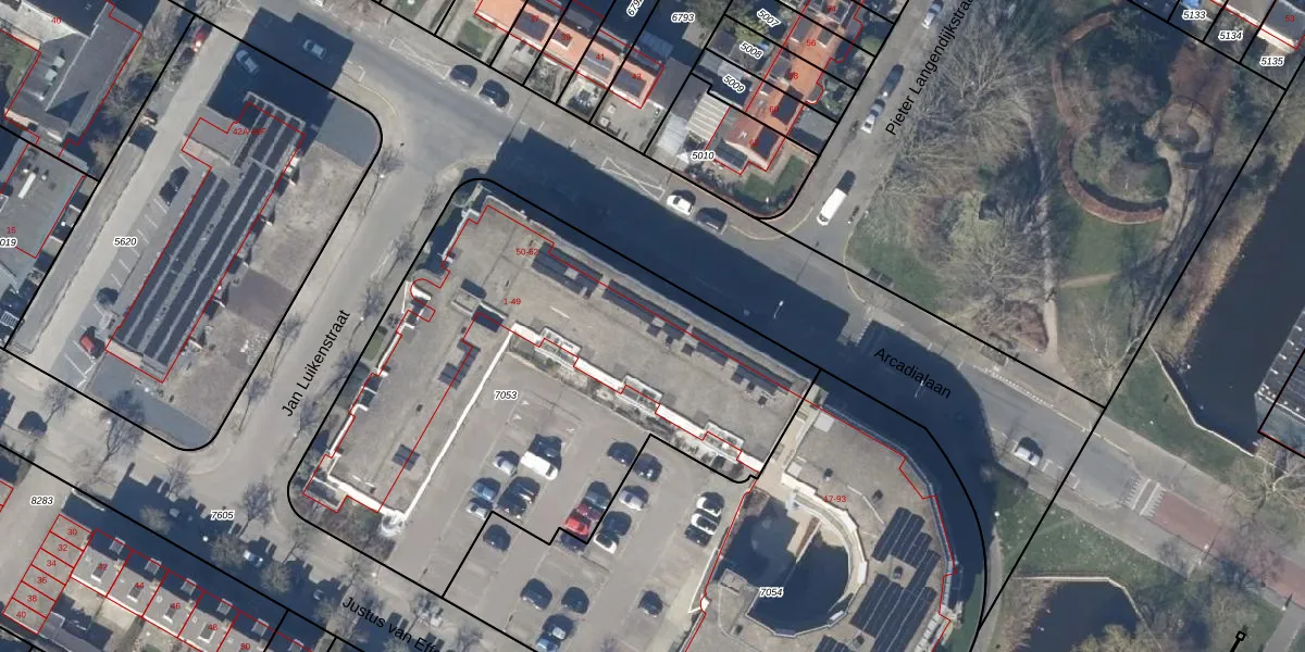 Het perceel waarop Arcadialaan 56 staat heeft een oppervlakte van 2765 m². Dit is een zeer groot perceel. De perceeloppervlakte wordt geregistreerd door het Kadaster. Gedetailleerde informatie over de maten van dit perceel kunt u vinden in het rapport Kadastrale kaart met maatvoering van Arcadialaan 56.