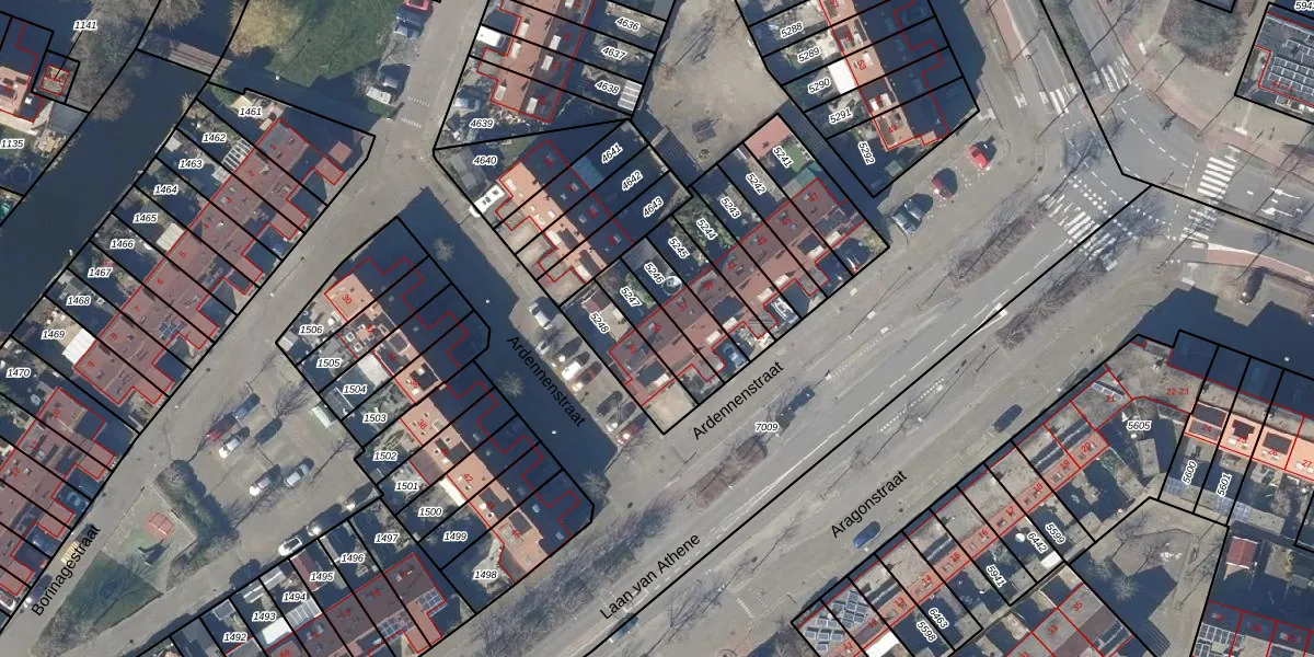 Het perceel waarop Ardennenstraat 35 staat heeft een oppervlakte van 128 m². Dit is een middelgroot perceel. De perceeloppervlakte wordt geregistreerd door het Kadaster. Gedetailleerde informatie over de maten van dit perceel kunt u vinden in het rapport Kadastrale kaart met maatvoering van Ardennenstraat 35.