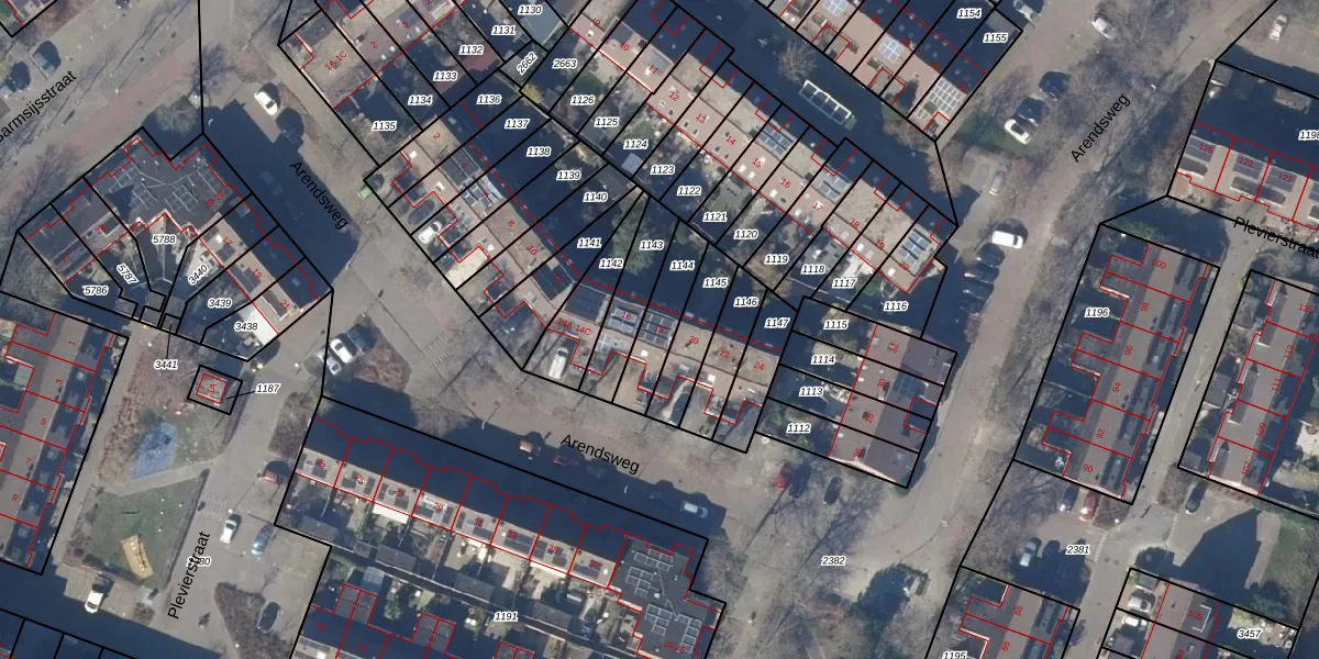 Gebruik de zoekbalk of klik op een perceel voor informatie over de adressen binnen dit perceel.