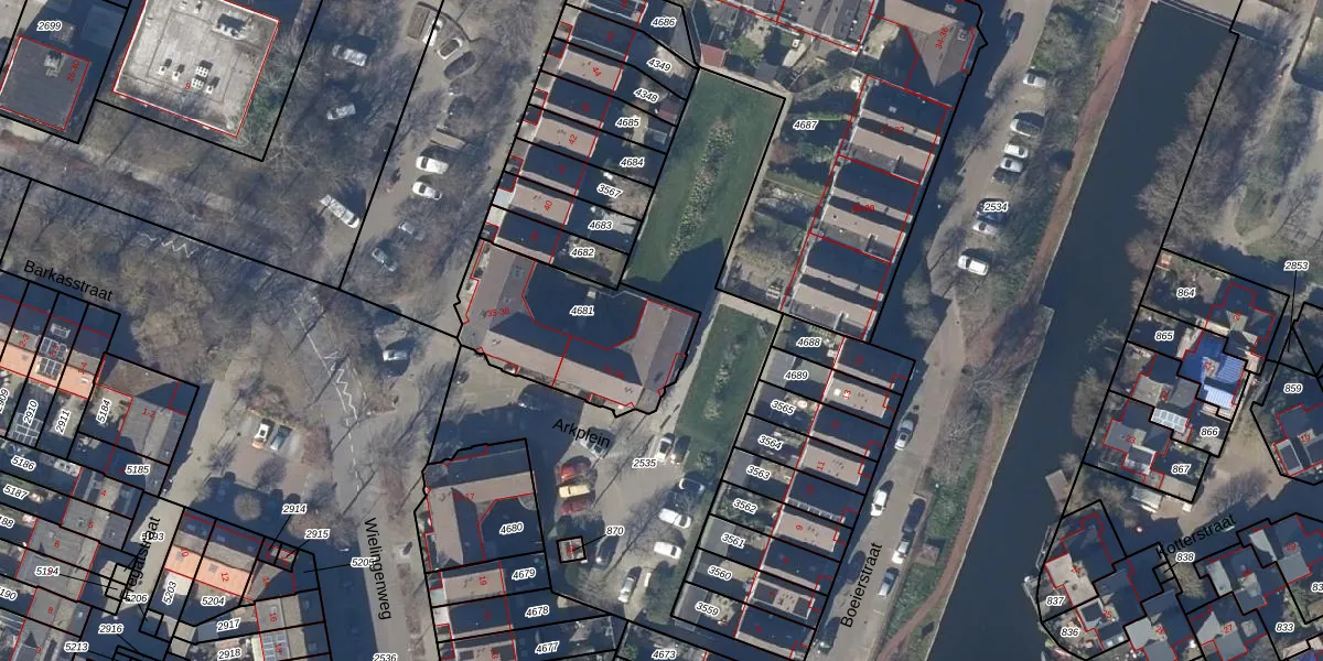 Het perceel waarop Arkplein 31 staat heeft een oppervlakte van 597 m². Dit is een groot perceel. De perceeloppervlakte wordt geregistreerd door het Kadaster. Gedetailleerde informatie over de maten van dit perceel kunt u vinden in het rapport Kadastrale kaart met maatvoering van Arkplein 31.