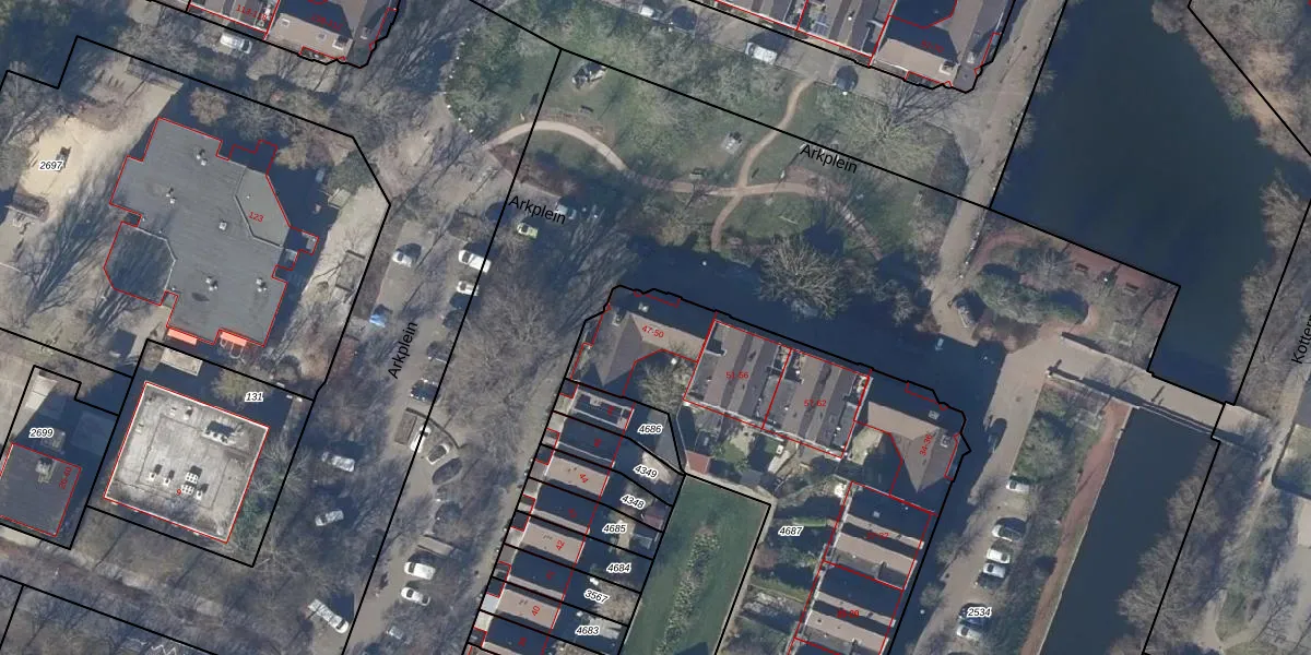 Het perceel waarop Arkplein 50 staat heeft een oppervlakte van 2089 m². Dit is een zeer groot perceel. De perceeloppervlakte wordt geregistreerd door het Kadaster. Gedetailleerde informatie over de maten van dit perceel kunt u vinden in het rapport Kadastrale kaart met maatvoering van Arkplein 50.
