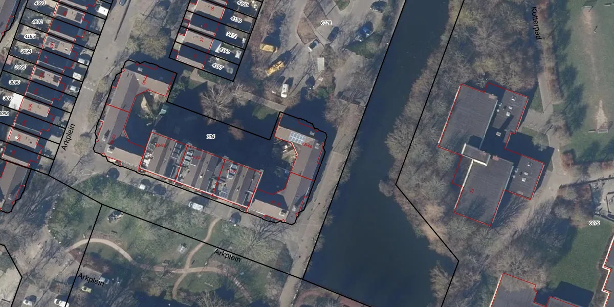 Het perceel waarop Arkplein 65 staat heeft een oppervlakte van 2103 m². Dit is een zeer groot perceel. De perceeloppervlakte wordt geregistreerd door het Kadaster. Gedetailleerde informatie over de maten van dit perceel kunt u vinden in het rapport Kadastrale kaart met maatvoering van Arkplein 65.