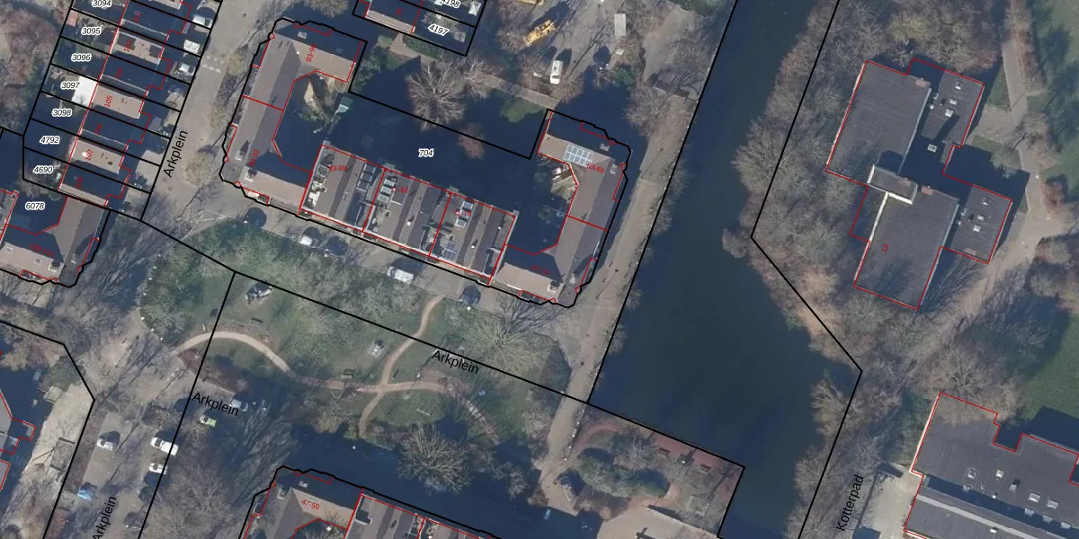 Het perceel waarop Arkplein 69 staat heeft een oppervlakte van 2103 m². Dit is een zeer groot perceel. De perceeloppervlakte wordt geregistreerd door het Kadaster. Gedetailleerde informatie over de maten van dit perceel kunt u vinden in het rapport Kadastrale kaart met maatvoering van Arkplein 69.