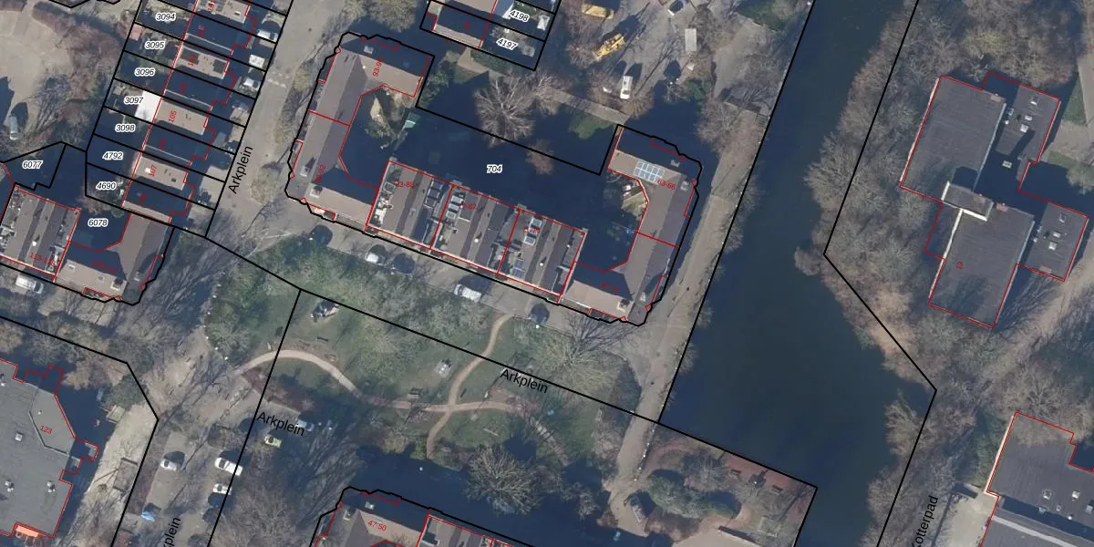Het perceel waarop Arkplein 71 staat heeft een oppervlakte van 2103 m². Dit is een zeer groot perceel. De perceeloppervlakte wordt geregistreerd door het Kadaster. Gedetailleerde informatie over de maten van dit perceel kunt u vinden in het rapport Kadastrale kaart met maatvoering van Arkplein 71.