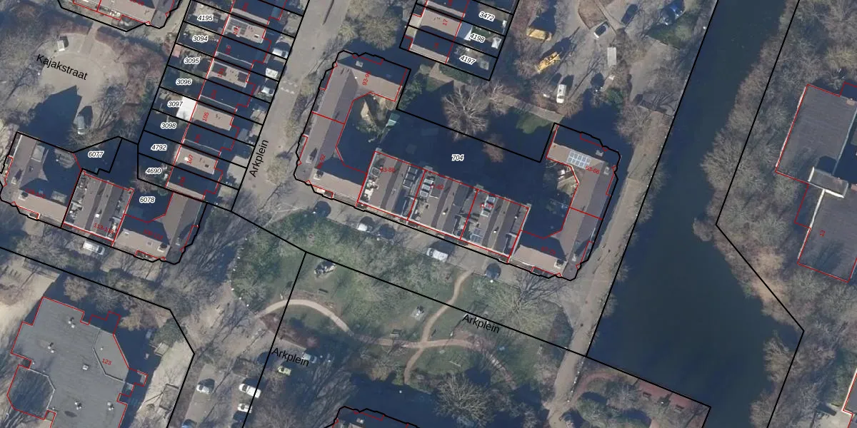 Het perceel waarop Arkplein 80 staat heeft een oppervlakte van 2103 m². Dit is een zeer groot perceel. De perceeloppervlakte wordt geregistreerd door het Kadaster. Gedetailleerde informatie over de maten van dit perceel kunt u vinden in het rapport Kadastrale kaart met maatvoering van Arkplein 80.
