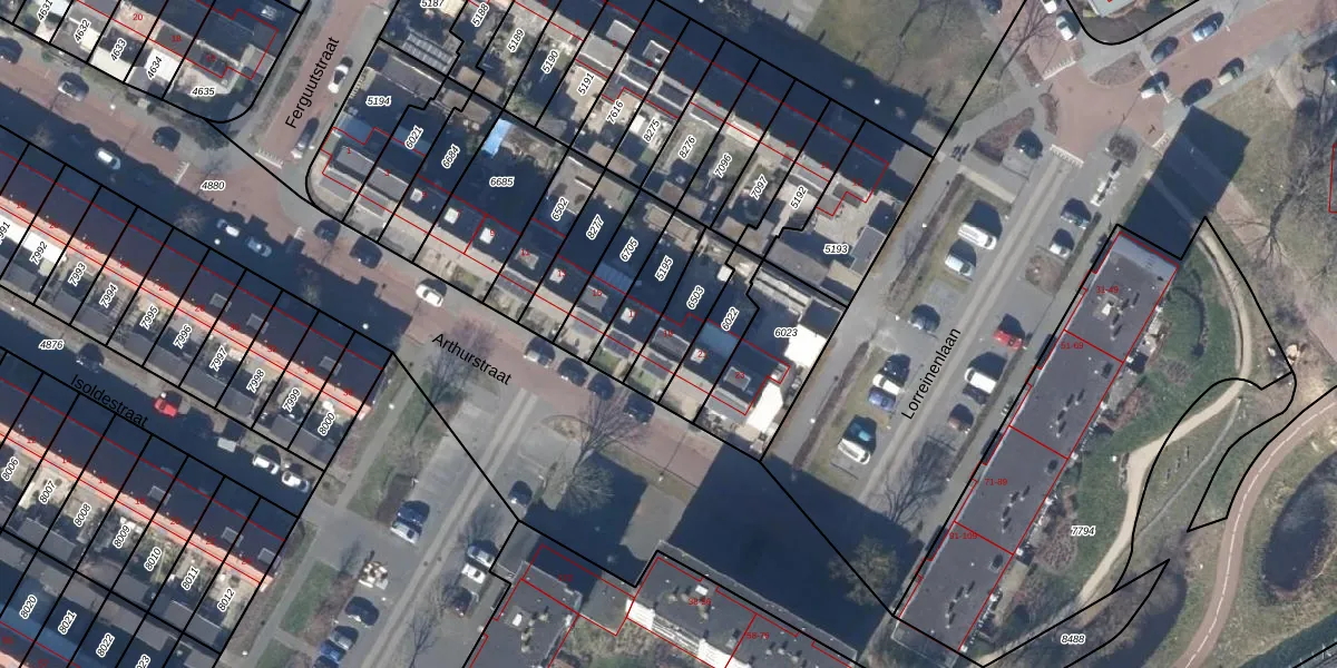 Gebruik de zoekbalk of klik op een perceel voor informatie over de adressen binnen dit perceel.
