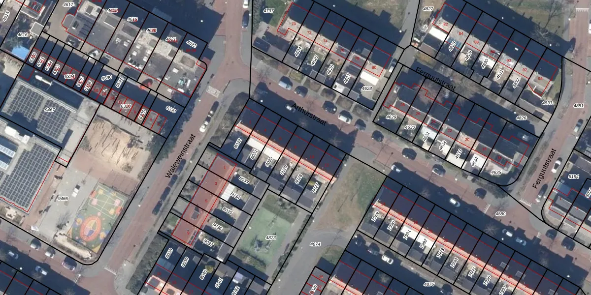Gebruik de zoekbalk of klik op een perceel voor informatie over de adressen binnen dit perceel.