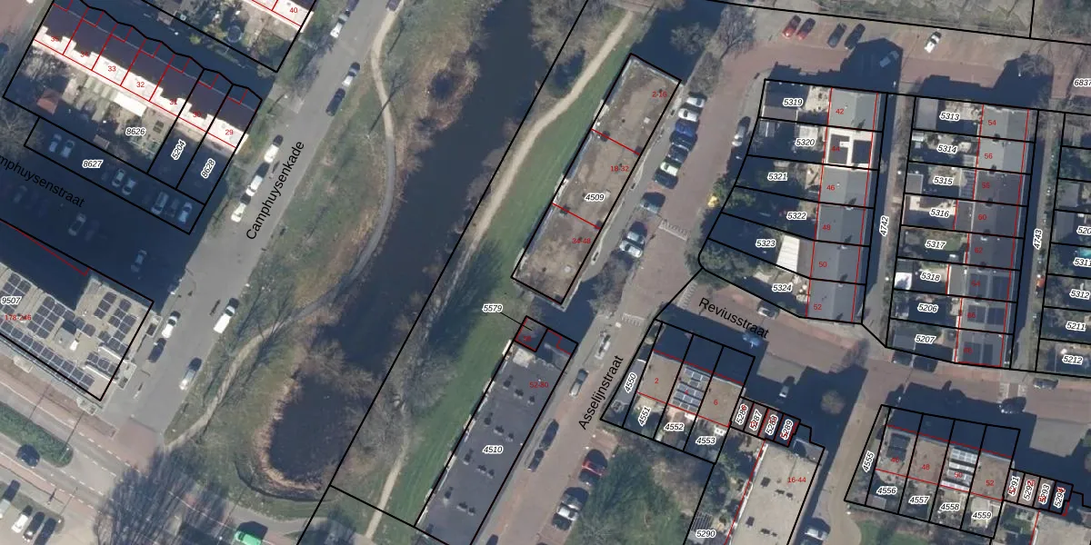 Het perceel waarop Asselijnstraat 40 staat heeft een oppervlakte van 483 m². Dit is een groot perceel. De perceeloppervlakte wordt geregistreerd door het Kadaster. Gedetailleerde informatie over de maten van dit perceel kunt u vinden in het rapport Kadastrale kaart met maatvoering van Asselijnstraat 40.
