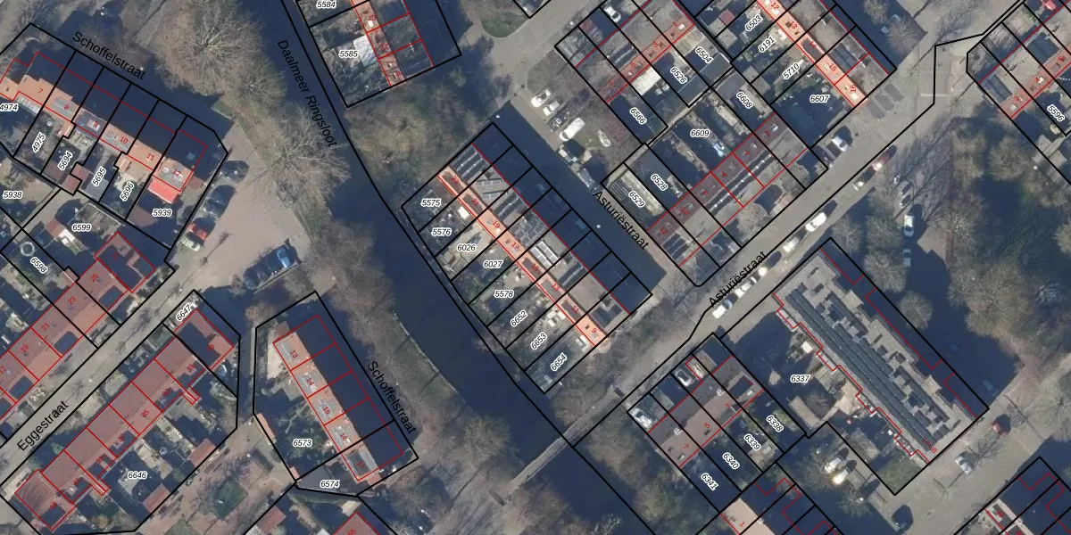 Gebruik de zoekbalk of klik op een perceel voor informatie over de adressen binnen dit perceel.