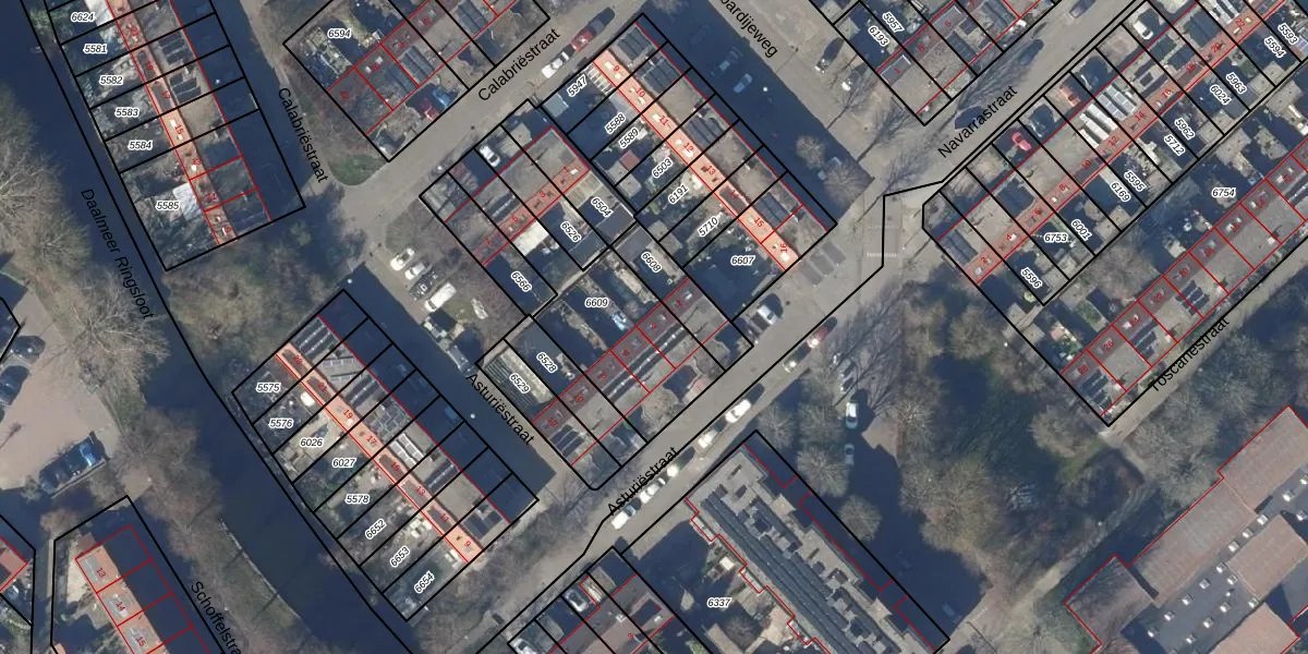 Het perceel waarop Asturiëstraat 4 staat heeft een oppervlakte van 558 m². Dit is een groot perceel. De perceeloppervlakte wordt geregistreerd door het Kadaster. Gedetailleerde informatie over de maten van dit perceel kunt u vinden in het rapport Kadastrale kaart met maatvoering van Asturiëstraat 4.