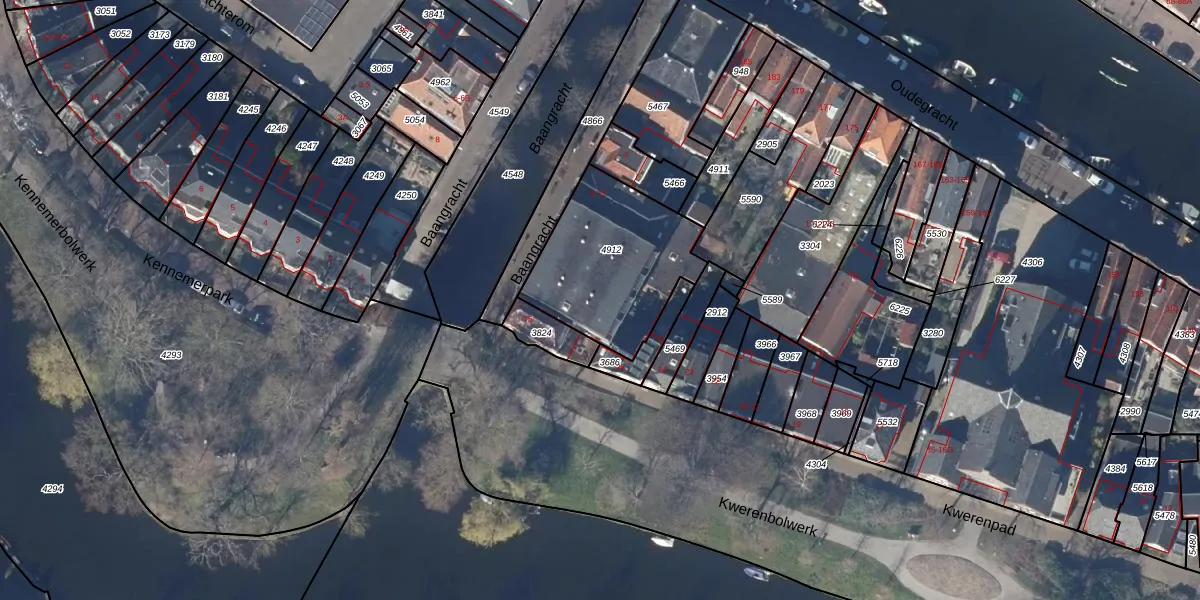 Het perceel waarop Baangracht 57 staat heeft een oppervlakte van 569 m². Dit is een groot perceel. De perceeloppervlakte wordt geregistreerd door het Kadaster. Gedetailleerde informatie over de maten van dit perceel kunt u vinden in het rapport Kadastrale kaart met maatvoering van Baangracht 57.