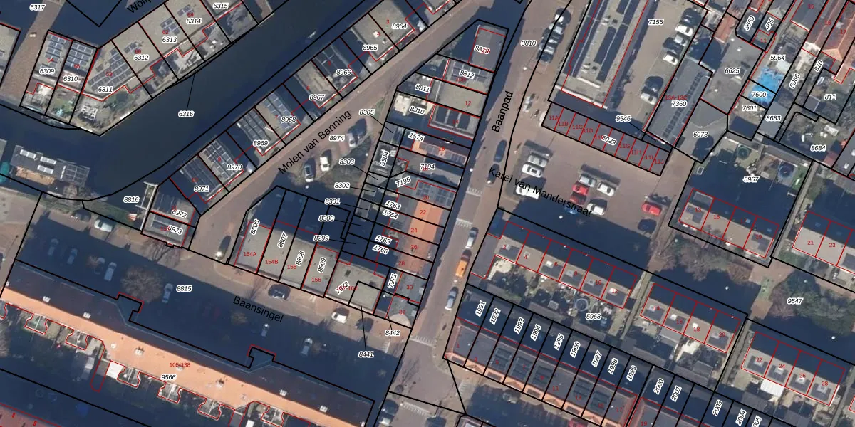 Gebruik de zoekbalk of klik op een perceel voor informatie over de adressen binnen dit perceel.