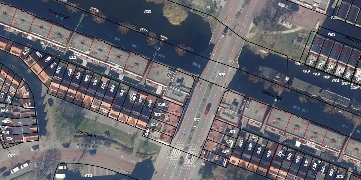 Het perceel waarop Baansingel 36 staat heeft een oppervlakte van 2215 m². Dit is een zeer groot perceel. De perceeloppervlakte wordt geregistreerd door het Kadaster. Gedetailleerde informatie over de maten van dit perceel kunt u vinden in het rapport Kadastrale kaart met maatvoering van Baansingel 36.