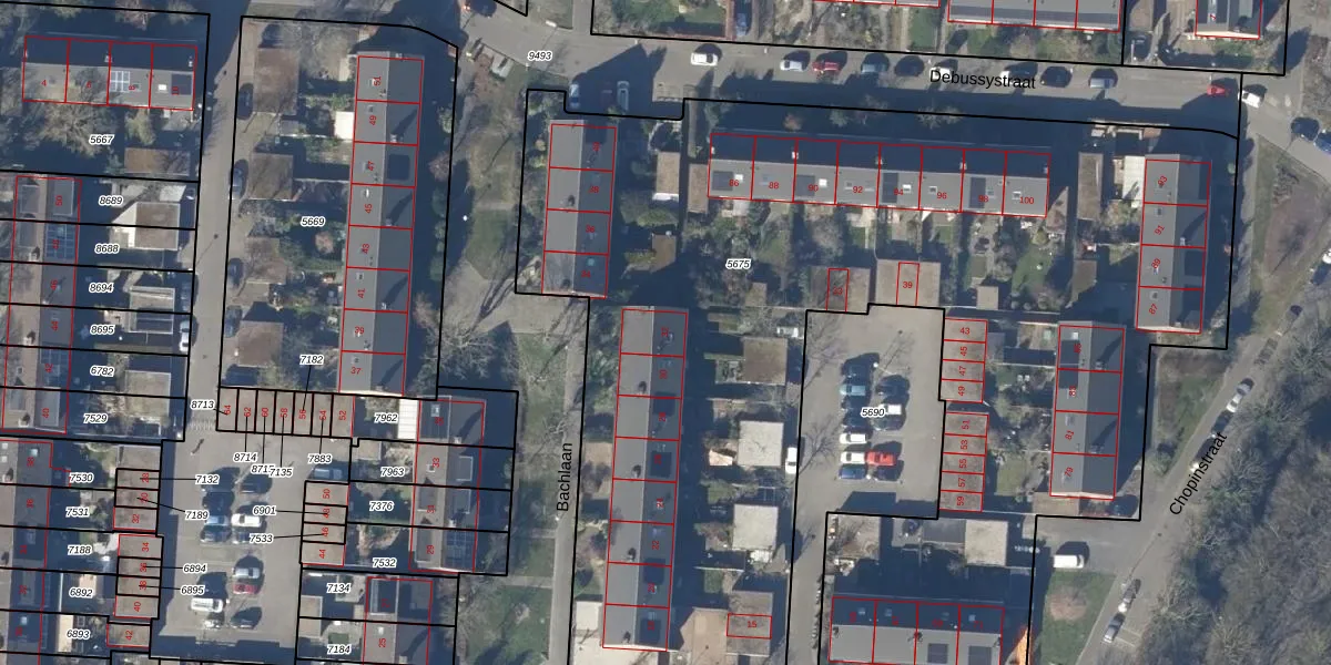 Het perceel waarop Bachlaan 32 staat heeft een oppervlakte van 6872 m². Dit is een zeer groot perceel. De perceeloppervlakte wordt geregistreerd door het Kadaster. Gedetailleerde informatie over de maten van dit perceel kunt u vinden in het rapport Kadastrale kaart met maatvoering van Bachlaan 32.
