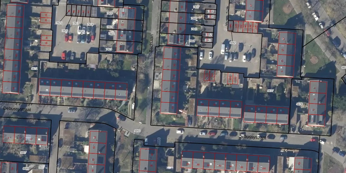 Het perceel waarop Bachlaan 46 staat heeft een oppervlakte van 5114 m². Dit is een zeer groot perceel. De perceeloppervlakte wordt geregistreerd door het Kadaster. Gedetailleerde informatie over de maten van dit perceel kunt u vinden in het rapport Kadastrale kaart met maatvoering van Bachlaan 46.