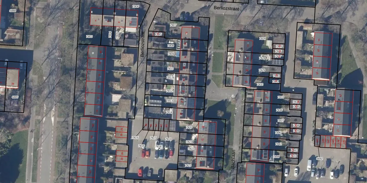 Gebruik de zoekbalk of klik op een perceel voor informatie over de adressen binnen dit perceel.