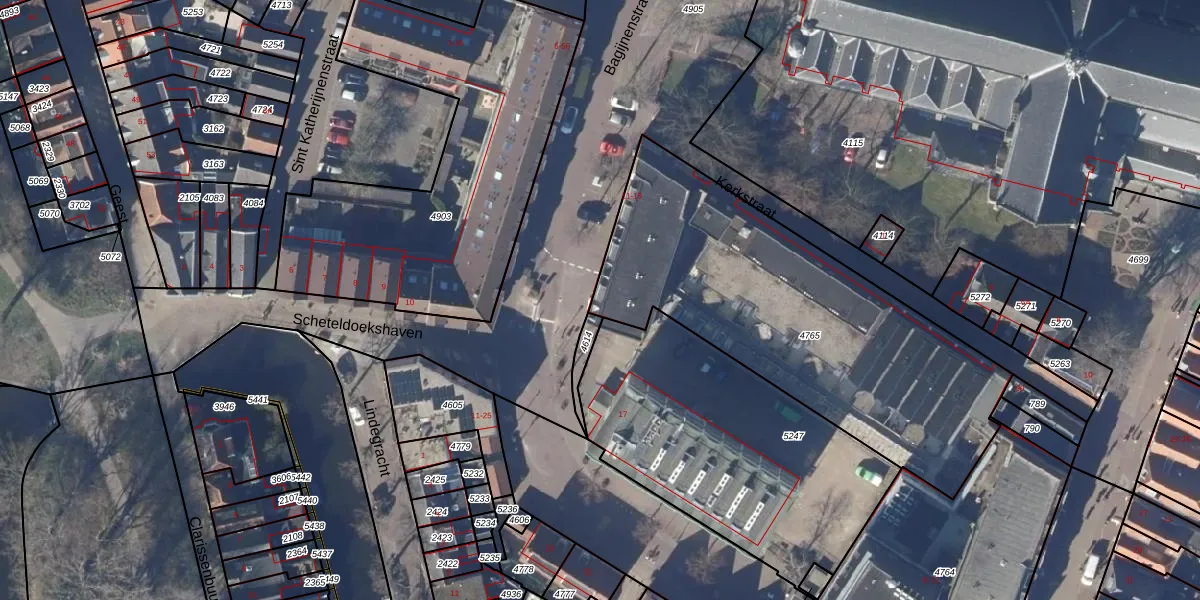 Het perceel waarop Bagijnenstraat 15 staat heeft een oppervlakte van 1754 m². Dit is een zeer groot perceel. De perceeloppervlakte wordt geregistreerd door het Kadaster. Gedetailleerde informatie over de maten van dit perceel kunt u vinden in het rapport Kadastrale kaart met maatvoering van Bagijnenstraat 15.