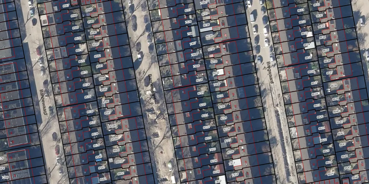 Gebruik de zoekbalk of klik op een perceel voor informatie over de adressen binnen dit perceel.