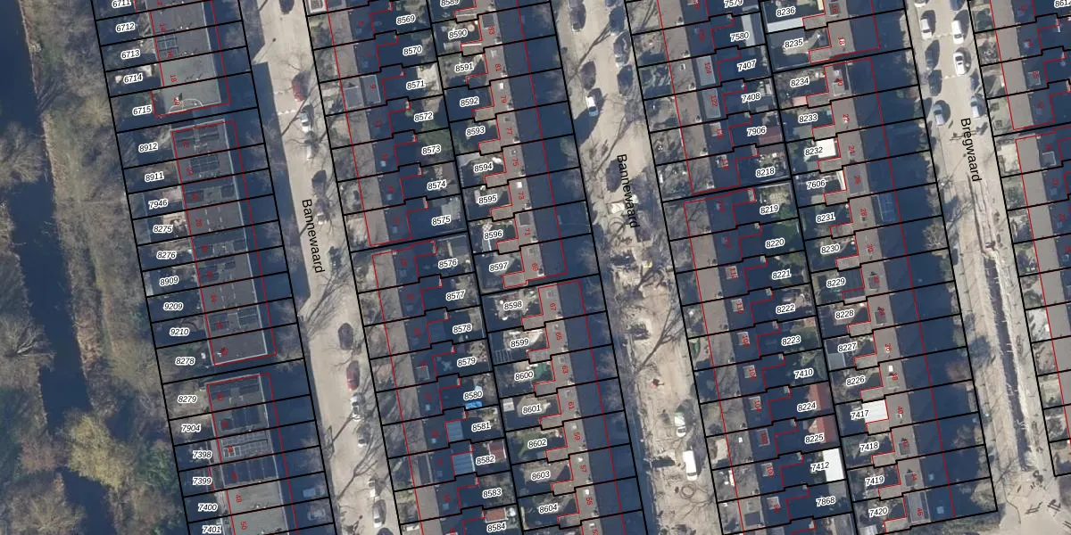 Gebruik de zoekbalk of klik op een perceel voor informatie over de adressen binnen dit perceel.