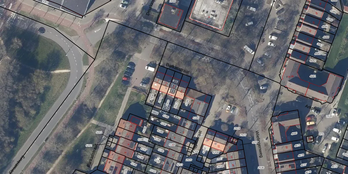 Gebruik de zoekbalk of klik op een perceel voor informatie over de adressen binnen dit perceel.