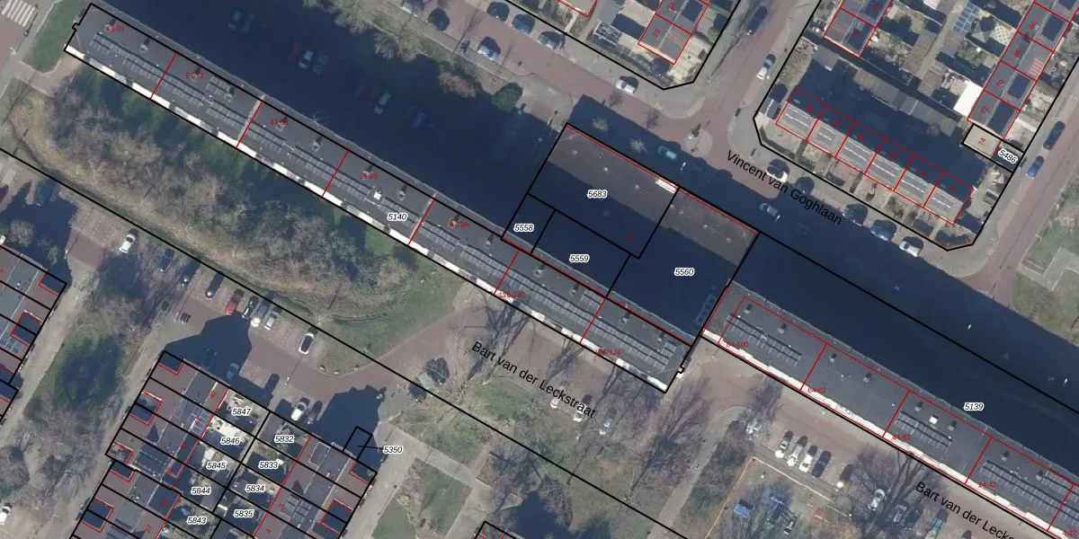 Het perceel waarop Bart van der Leckstraat 140 staat heeft een oppervlakte van 1379 m². Dit is een zeer groot perceel. De perceeloppervlakte wordt geregistreerd door het Kadaster. Gedetailleerde informatie over de maten van dit perceel kunt u vinden in het rapport Kadastrale kaart met maatvoering van Bart van der Leckstraat 140.