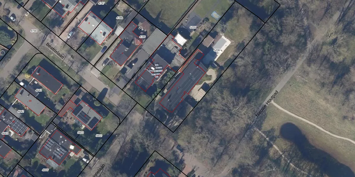 Het perceel waarop Beatrixlaan 2 staat heeft een oppervlakte van 1681 m². Dit is een zeer groot perceel. De perceeloppervlakte wordt geregistreerd door het Kadaster. Gedetailleerde informatie over de maten van dit perceel kunt u vinden in het rapport Kadastrale kaart met maatvoering van Beatrixlaan 2.