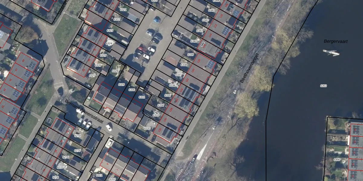 Gebruik de zoekbalk of klik op een perceel voor informatie over de adressen binnen dit perceel.