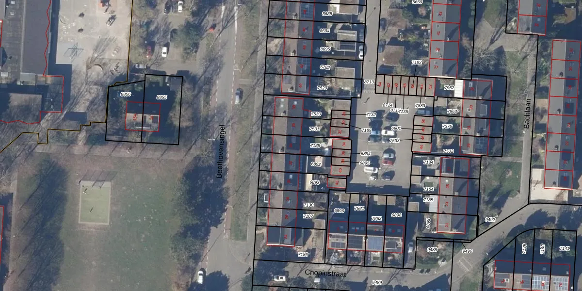 Het perceel waarop Beethovensingel 34 staat heeft een oppervlakte van 180 m². Dit is een middelgroot perceel. De perceeloppervlakte wordt geregistreerd door het Kadaster. Gedetailleerde informatie over de maten van dit perceel kunt u vinden in het rapport Kadastrale kaart met maatvoering van Beethovensingel 34.