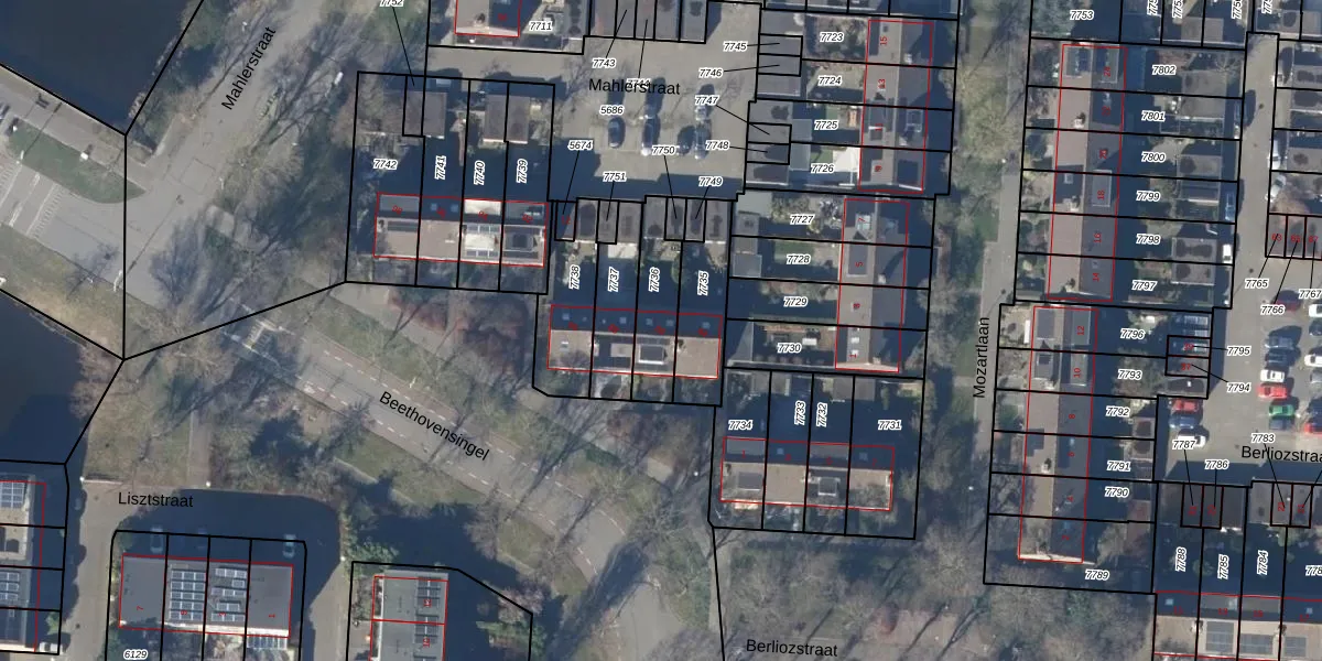 Gebruik de zoekbalk of klik op een perceel voor informatie over de adressen binnen dit perceel.