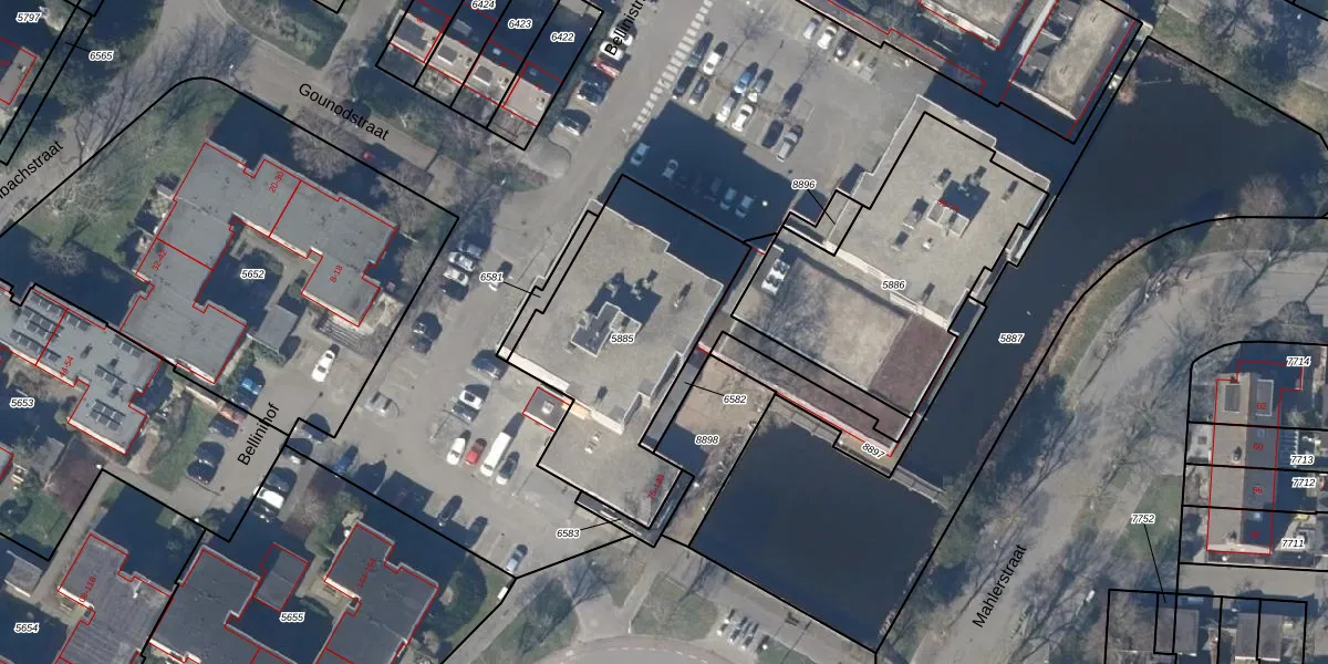 Het perceel waarop Bellinistraat 125 staat heeft een oppervlakte van 963 m². Dit is een groot perceel. De perceeloppervlakte wordt geregistreerd door het Kadaster. Gedetailleerde informatie over de maten van dit perceel kunt u vinden in het rapport Kadastrale kaart met maatvoering van Bellinistraat 125.