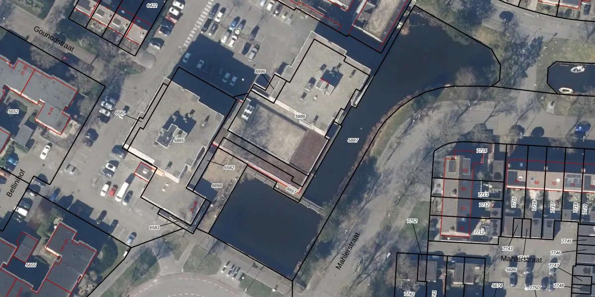 Het perceel waarop Bellinistraat 57 staat heeft een oppervlakte van 1006 m². Dit is een zeer groot perceel. De perceeloppervlakte wordt geregistreerd door het Kadaster. Gedetailleerde informatie over de maten van dit perceel kunt u vinden in het rapport Kadastrale kaart met maatvoering van Bellinistraat 57.