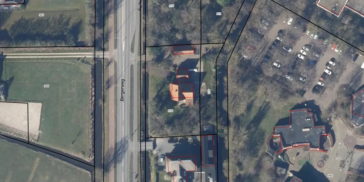 Het perceel waarop Bergerweg 173 staat heeft een oppervlakte van 1510 m². Dit is een zeer groot perceel. De perceeloppervlakte wordt geregistreerd door het Kadaster. Gedetailleerde informatie over de maten van dit perceel kunt u vinden in het rapport Kadastrale kaart met maatvoering van Bergerweg 173.