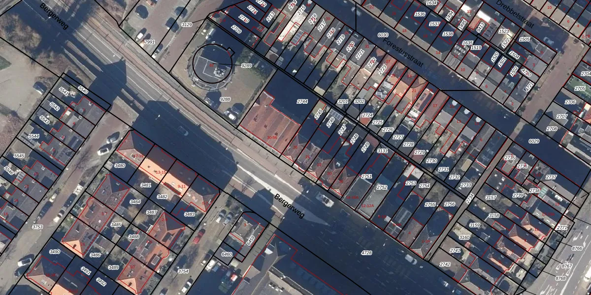 Gebruik de zoekbalk of klik op een perceel voor informatie over de adressen binnen dit perceel.