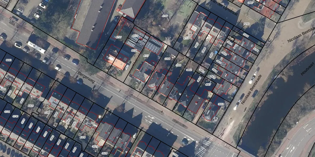 Gebruik de zoekbalk of klik op een perceel voor informatie over de adressen binnen dit perceel.