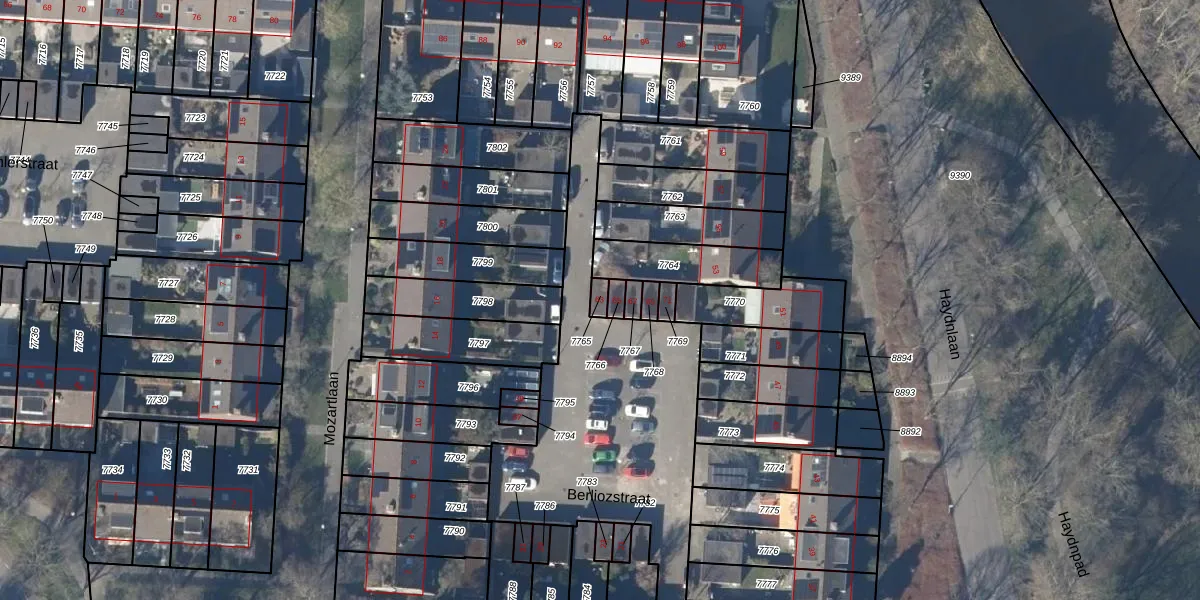 Het perceel waarop Berliozstraat 63 staat heeft een oppervlakte van 19 m². Dit is een klein perceel. De perceeloppervlakte wordt geregistreerd door het Kadaster. Gedetailleerde informatie over de maten van dit perceel kunt u vinden in het rapport Kadastrale kaart met maatvoering van Berliozstraat 63.