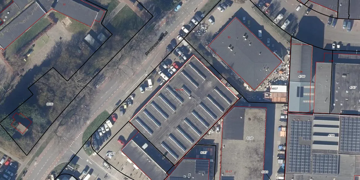 Het perceel waarop Bestevaerstraat 57 staat heeft een oppervlakte van 2670 m². Dit is een zeer groot perceel. De perceeloppervlakte wordt geregistreerd door het Kadaster. Gedetailleerde informatie over de maten van dit perceel kunt u vinden in het rapport Kadastrale kaart met maatvoering van Bestevaerstraat 57.