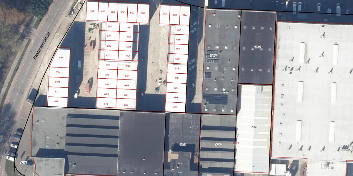 Het perceel waarop Bestevaerstraat 63-G staat heeft een oppervlakte van 5184 m². Dit is een zeer groot perceel. De perceeloppervlakte wordt geregistreerd door het Kadaster. Gedetailleerde informatie over de maten van dit perceel kunt u vinden in het rapport Kadastrale kaart met maatvoering van Bestevaerstraat 63-G.