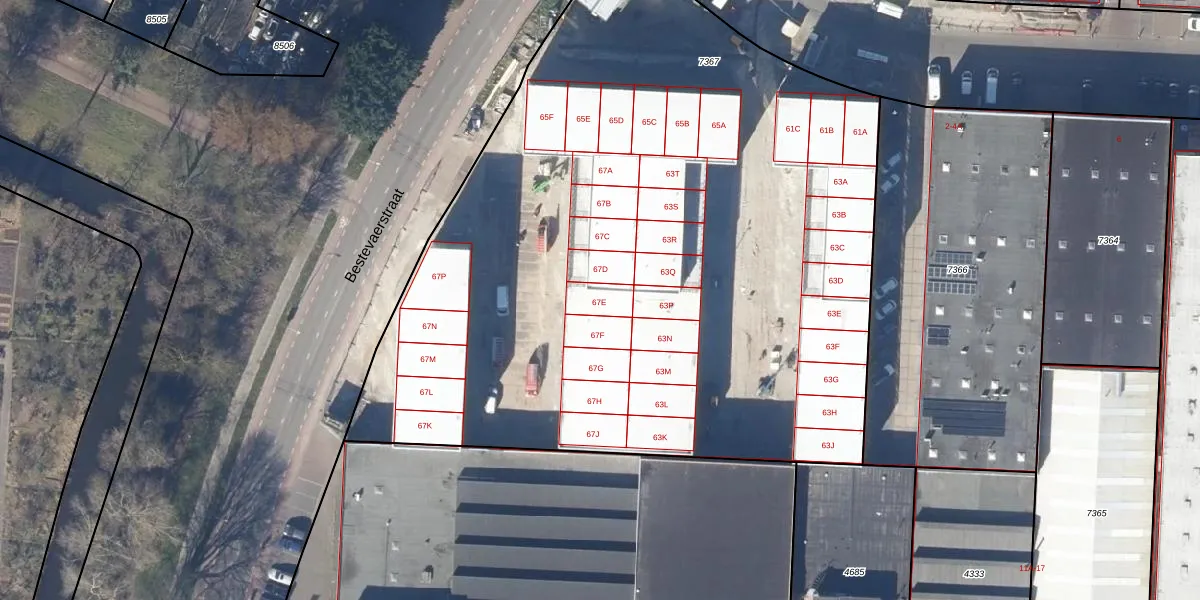 Het perceel waarop Bestevaerstraat 67-E staat heeft een oppervlakte van 5184 m². Dit is een zeer groot perceel. De perceeloppervlakte wordt geregistreerd door het Kadaster. Gedetailleerde informatie over de maten van dit perceel kunt u vinden in het rapport Kadastrale kaart met maatvoering van Bestevaerstraat 67-E.