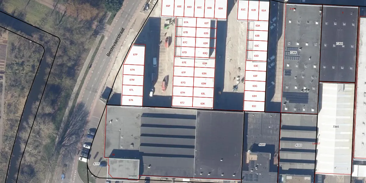 Het perceel waarop Bestevaerstraat 67-H staat heeft een oppervlakte van 5184 m². Dit is een zeer groot perceel. De perceeloppervlakte wordt geregistreerd door het Kadaster. Gedetailleerde informatie over de maten van dit perceel kunt u vinden in het rapport Kadastrale kaart met maatvoering van Bestevaerstraat 67-H.