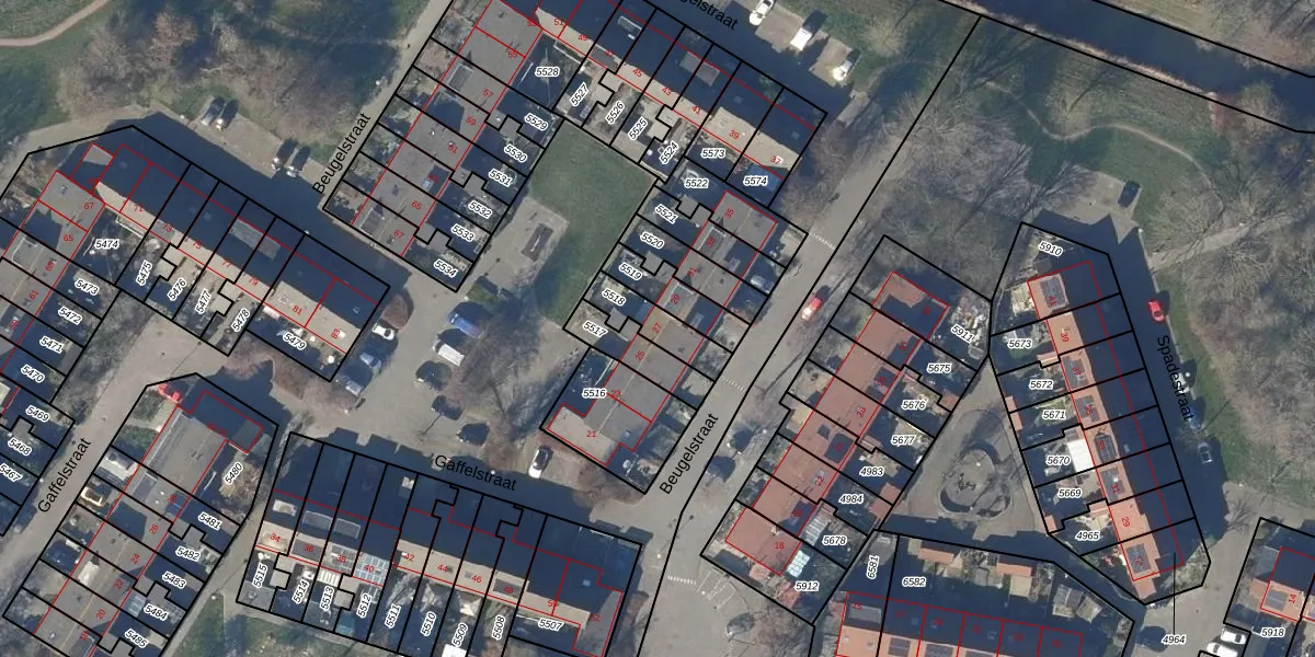 Gebruik de zoekbalk of klik op een perceel voor informatie over de adressen binnen dit perceel.