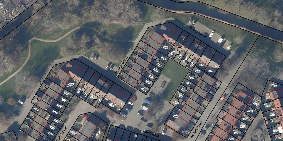 Het perceel waarop Beugelstraat 63 staat heeft een oppervlakte van 122 m². Dit is een middelgroot perceel. De perceeloppervlakte wordt geregistreerd door het Kadaster. Gedetailleerde informatie over de maten van dit perceel kunt u vinden in het rapport Kadastrale kaart met maatvoering van Beugelstraat 63.
