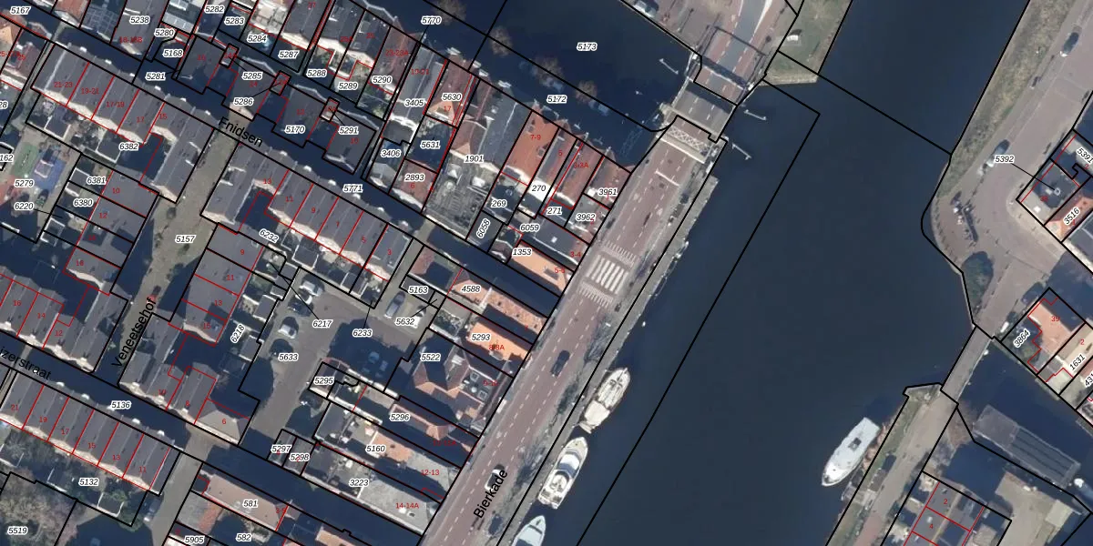 Het perceel waarop Bierkade 5 staat heeft een oppervlakte van 59 m². Dit is een klein perceel. De perceeloppervlakte wordt geregistreerd door het Kadaster. Gedetailleerde informatie over de maten van dit perceel kunt u vinden in het rapport Kadastrale kaart met maatvoering van Bierkade 5.