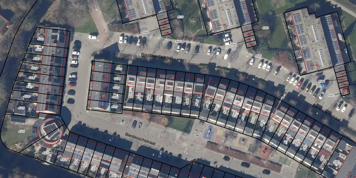 Het perceel waarop Biesboschstraat 120 staat heeft een oppervlakte van 136 m². Dit is een middelgroot perceel. De perceeloppervlakte wordt geregistreerd door het Kadaster. Gedetailleerde informatie over de maten van dit perceel kunt u vinden in het rapport Kadastrale kaart met maatvoering van Biesboschstraat 120.