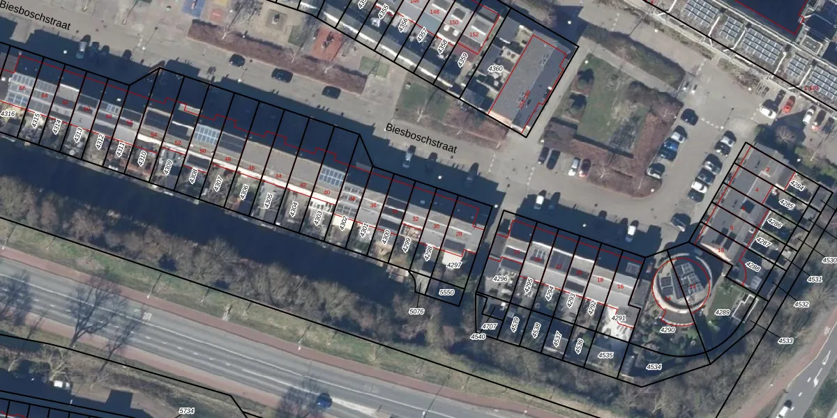 Het perceel waarop Biesboschstraat 32 staat heeft een oppervlakte van 112 m². Dit is een middelgroot perceel. De perceeloppervlakte wordt geregistreerd door het Kadaster. Gedetailleerde informatie over de maten van dit perceel kunt u vinden in het rapport Kadastrale kaart met maatvoering van Biesboschstraat 32.