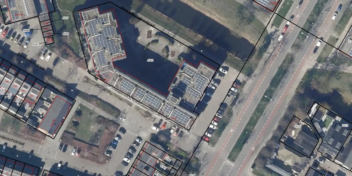 Het perceel waarop Biesboschstraat 43 staat heeft een oppervlakte van 3177 m². Dit is een zeer groot perceel. De perceeloppervlakte wordt geregistreerd door het Kadaster. Gedetailleerde informatie over de maten van dit perceel kunt u vinden in het rapport Kadastrale kaart met maatvoering van Biesboschstraat 43.