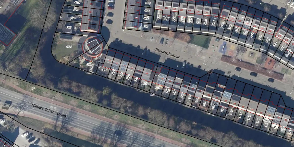 Het perceel waarop Biesboschstraat 68 staat heeft een oppervlakte van 170 m². Dit is een middelgroot perceel. De perceeloppervlakte wordt geregistreerd door het Kadaster. Gedetailleerde informatie over de maten van dit perceel kunt u vinden in het rapport Kadastrale kaart met maatvoering van Biesboschstraat 68.